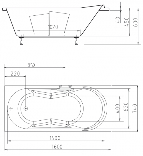 Rechteck Badewanne Anja 160 x 74 x 45 cm Acryl 74 x 160 bequeme Körperformwanne