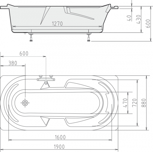 Rechteck Badewanne Katharina 190 x 88 x 43 cm Acryl 88 x 190 große Körperformwanne