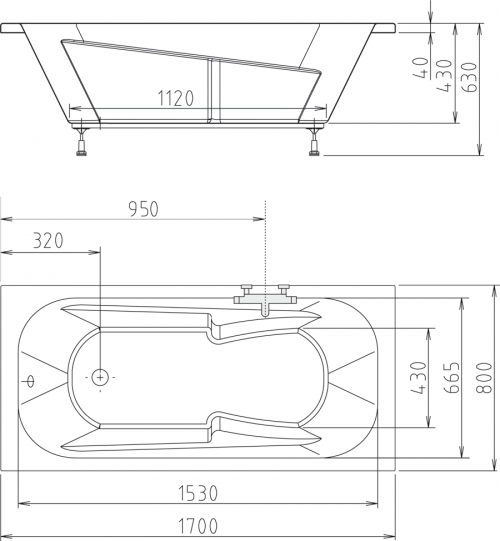 Rechteck Badewanne Karolin 170 x 80 x 45 cm Acryl 80 x 170 breite Körperformwanne