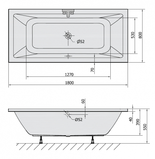 Rechteck Badewanne Krista 180 x 80 x 39 cm Acryl 80 x 180 schmal und modern