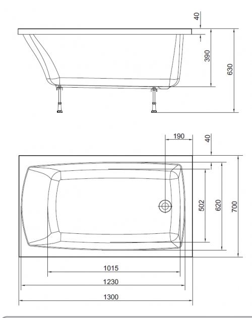 Rechteck Badewanne Liliana 130 x 70 x 39 cm Acryl 70 x 130, das kleine Raumwunder