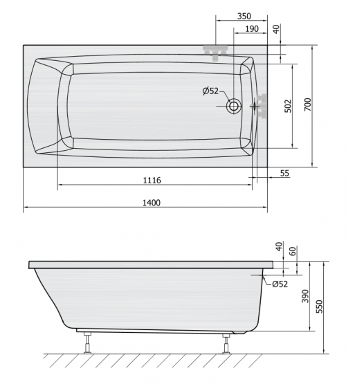 Rechteck Badewanne Liliana 140 x 70 x 39 cm Acryl 70 x 140, das kleine Raumwunder