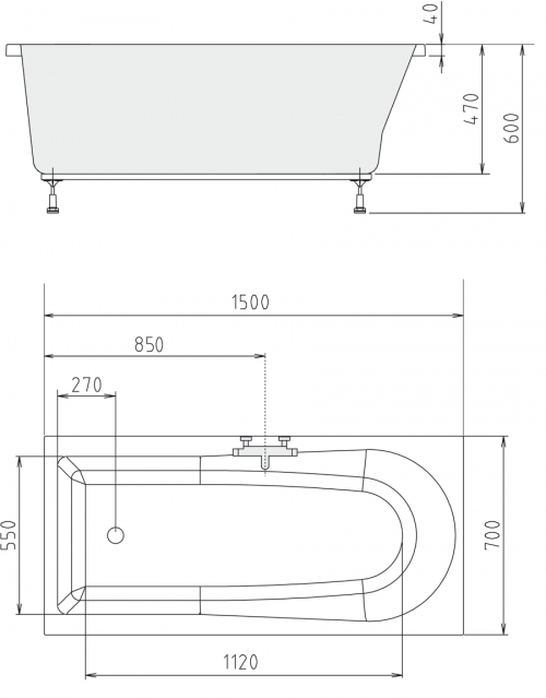 Rechteck Badewanne Lisanne 150 x 70 x 47 cm Acryl 70 x 150 ideal bei wenig Platz