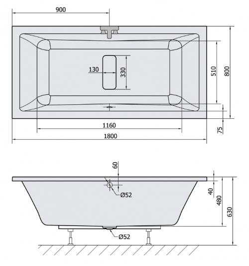 Rechteck Badewanne Marlene 180 x 80 x 48 cm Acryl 80 x 180 mit Ablaufabdeckung