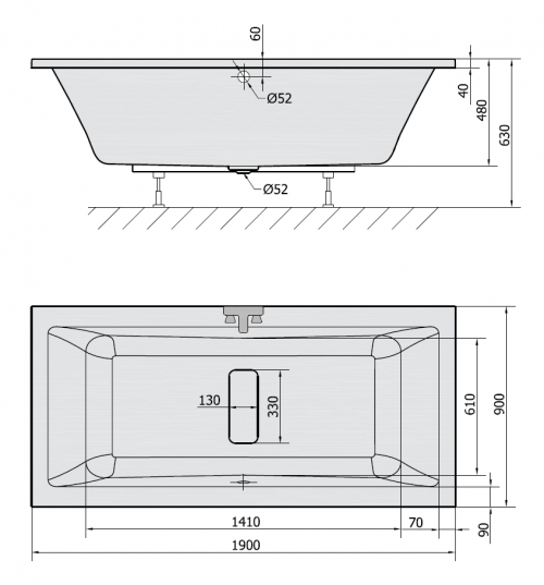 Rechteck Badewanne Marlene 190 x 90 x 48 cm Acryl 90 x 190 mit Ablauf-Abdeckung