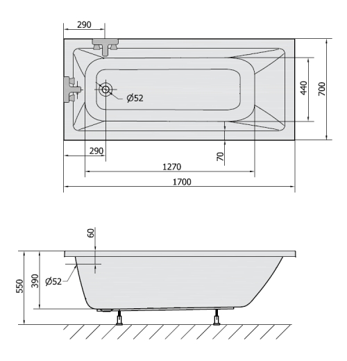 Rechteck Badewanne Naomi 170 x 70 x 39 cm Acryl 70 x 170 gut und günstig