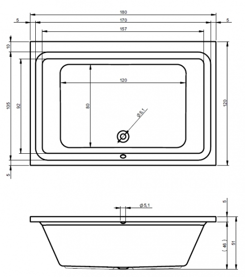 Rechteck Badewanne Cuxhaven 180 x 120 x 51 cm Acryl 120 x 180 tiefe Duo-Markenwanne