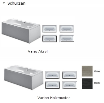 Die Modelle können Sie sich nach Form oder Badserie sortiert anzeigen lassen.