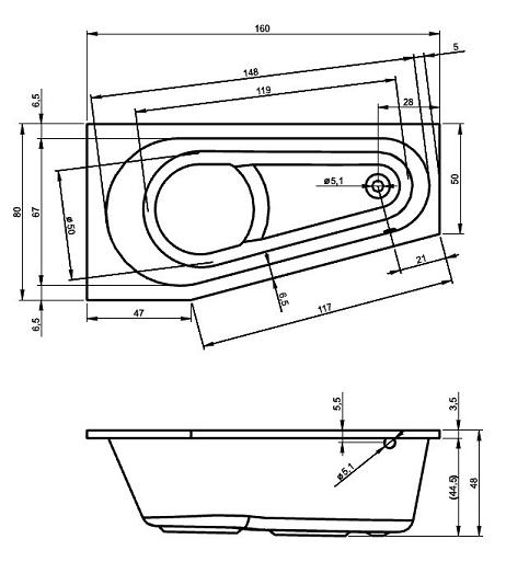 Raumspar Badewanne Den Haag 160 x 80 x 48 cm Links/ Rechts Acryl 80 x 160 für kleine Bäder