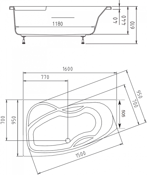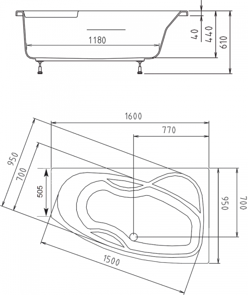 Raumsparbadewanne Maja 160 x 95 x 45 cm Links/Rechts Acryl 95 x 160 mit Duschzone