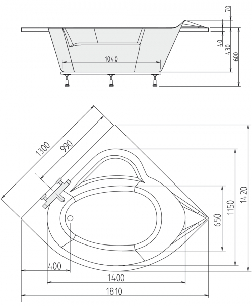 Ab- und Überlaufgarnitur bitte separat bestellen!