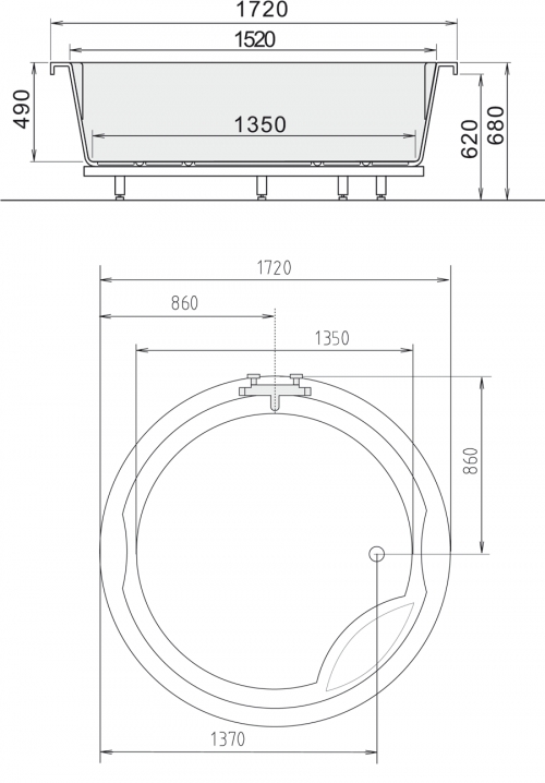 Runde Badewanne Queens Round D 172 x 49 cm Acryl schöne Wanne mit viel Platz und Stufe