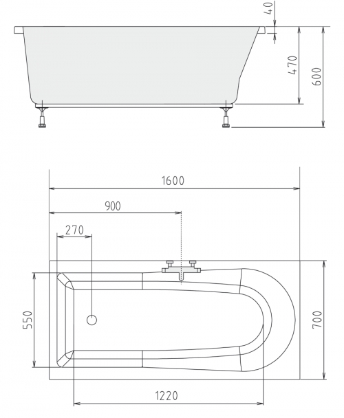 Rechteck Badewanne Lisanne 160 x 70 x 47 cm Acryl 70 x 160 ideal bei wenig Platz