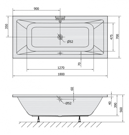 Rechteck Badewanne Krista 180 x 70 x 39 cm Acryl 70 x 180 schmal und modern
