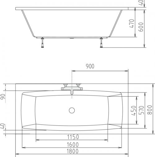 Rechteck Badewanne Quadra 180 x 80 x 47 cm Acryl 80 x 180 auch für Zwei