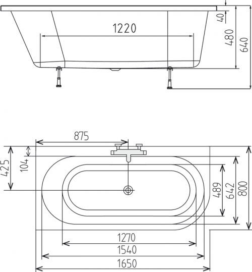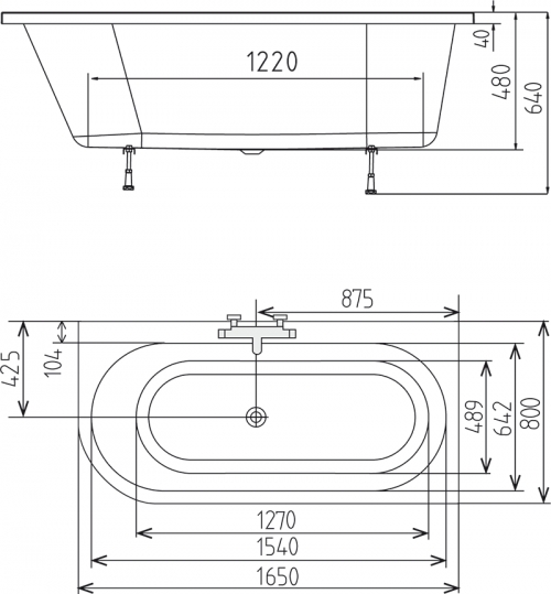 Ab- und Überlaufgarnitur bitte separat bestellen (Sonderlänge wegen Mittelablauf)!