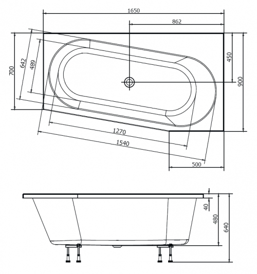 Raumsparbadewanne Asta W 165 x 90 x 48 cm Links/Rechts Acryl 90 x 165 asymmetrische Form