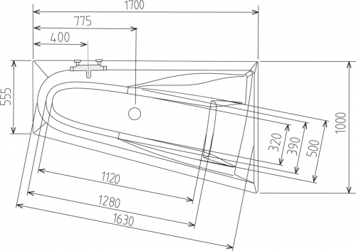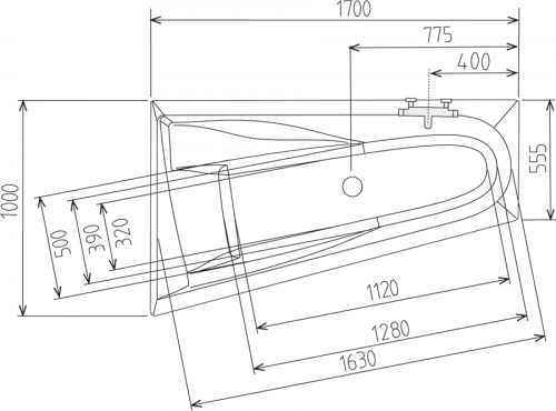 Raumspar Badewanne Chloe 170 x 100 x 45 cm Rechts Acryl 100 x 170 Design Badewanne