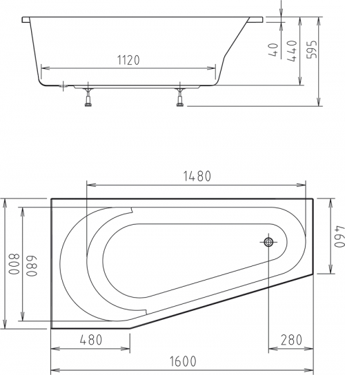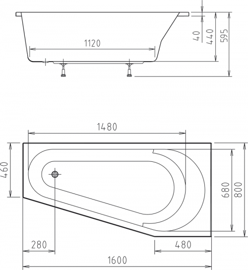 Raumspar Badewanne Paula 160 x 80 x 44 cm Links/Rechts Acryl 80 x 160 ideal für kleine Bäder