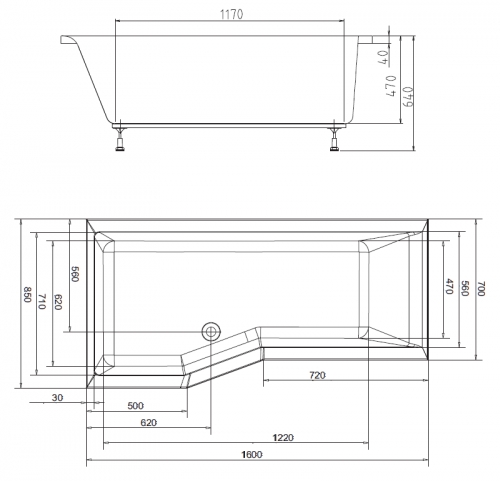 Raumspar Badewanne Vera 160 x 85/70 x 47 cm Links/Rechts Acryl 85 x 160 ideal auch zum Duschen