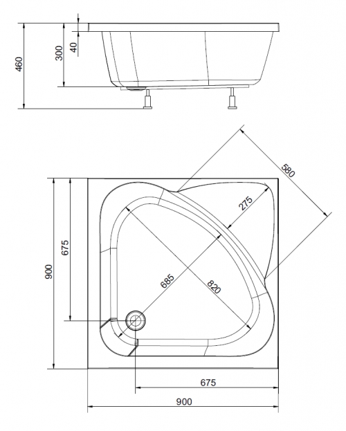 Acryl Rechteck Duschwanne Cara 90 x 90