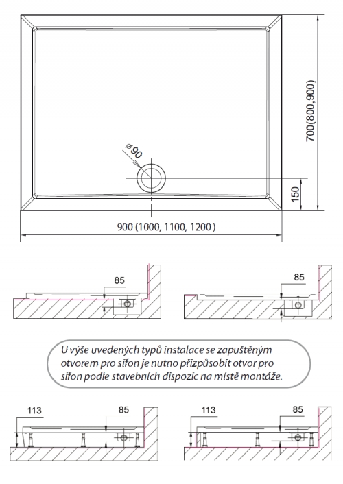 Mineralguss Rechteck Duschwanne Karina 90x70