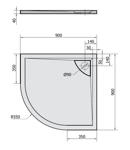 Mineralguss Viertelkreis Duschwanne Luisa 90 x 90