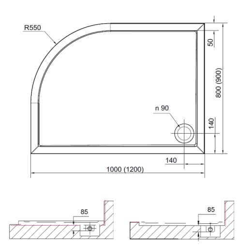 Mineralguss-Duschwanne Regina, 100 x 80 x 4 cm, weiß, Viertelkreis R55