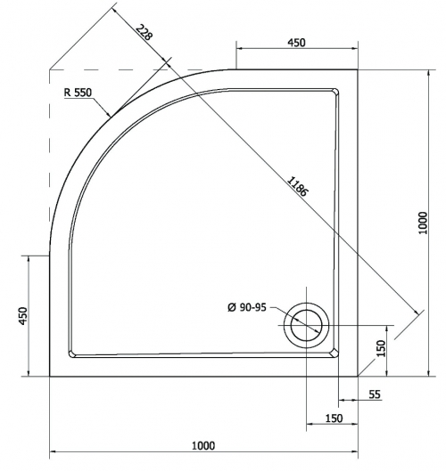 Mineralguss-Duschwanne Serina, 100 x 100 x 4 cm, weiß, Viertelkreis R50/55