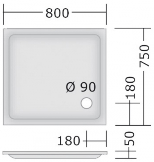 Acryl Rechteck Duschwanne "106" 80 x 75 x 2,5 cm