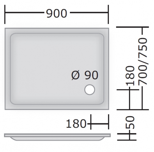 Acryl Rechteck Duschwanne "111" 90 x 70 x 2,5 cm