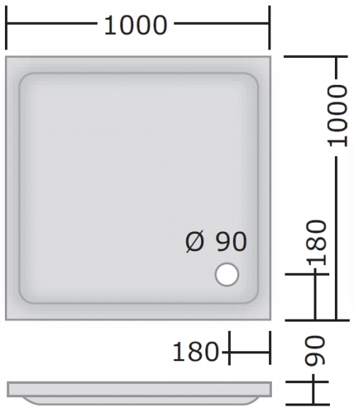 Acryl Rechteck Duschwanne "18" 100 x 100 x 6,5 cm