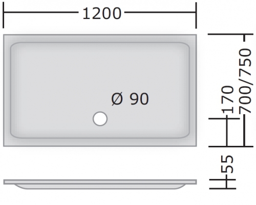 Acryl Rechteck Duschwanne "116" 120 x 70 x 4 cm