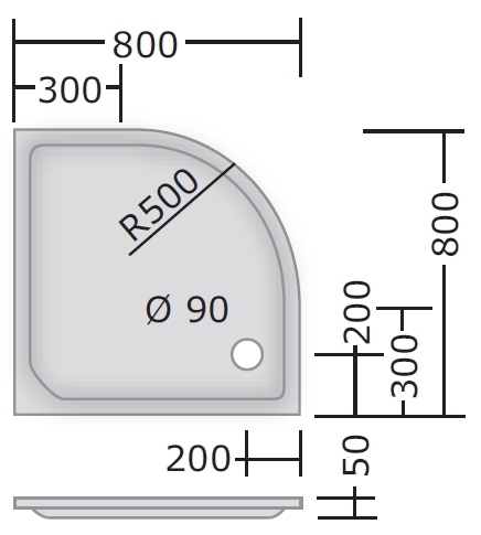 Acryl Viertelkreis Duschwanne "200" 80 x 80 x 2,5 cm (R50)