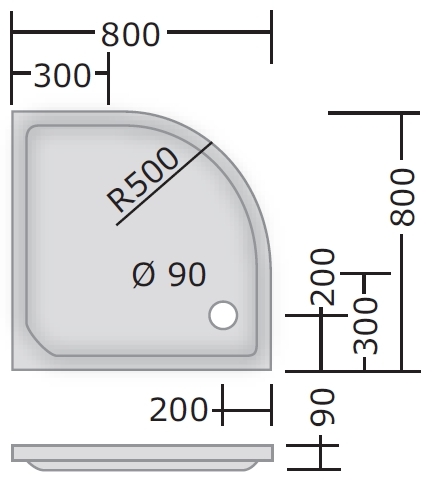 Acryl Viertelkreis Duschwanne "20" 80 x 80 x 6,5 cm (R50)