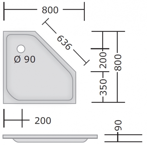 Acryl 5-Eck Duschwanne "30" 80 x 80 x 6,5 cm, Flanke 35 cm