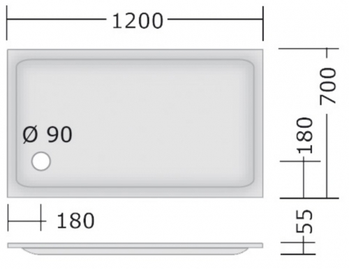 Acryl Rechteck Duschwanne "216" 120 x 70 x 2,5 cm