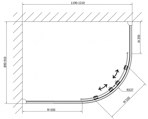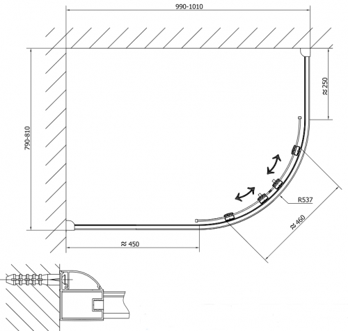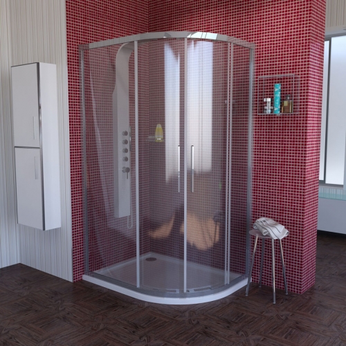 Duschabtrennung Lucis Line für asymmetrisch verlängerte Viertelkreis-Duschwannen 90 x 80 cm, 100 x 80 cm oder 120 x 90 cm, Radius 55