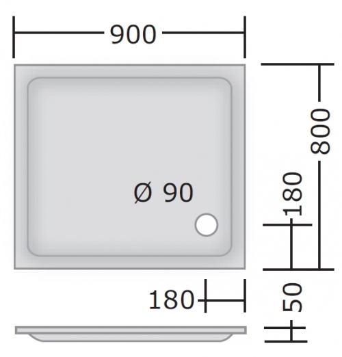 Acryl Rechteck Duschwanne "107" 90 x 80 x 2,5 cm