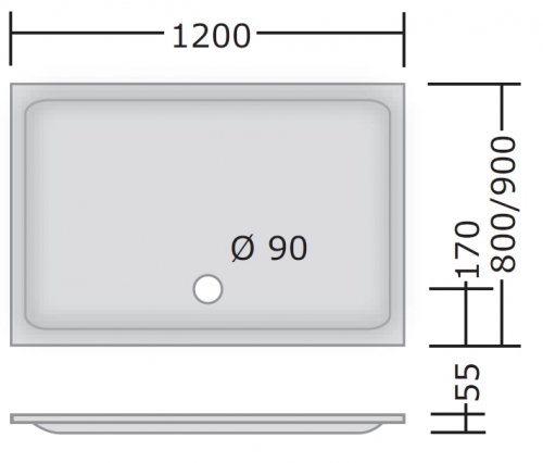 Acryl Rechteck Duschwanne "5" 120 x 90 x 3 cm