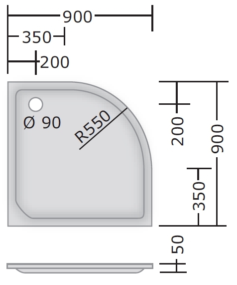 Acryl Viertelkreis Duschwanne "28" 90 x 90 x 2,5 cm (R55)